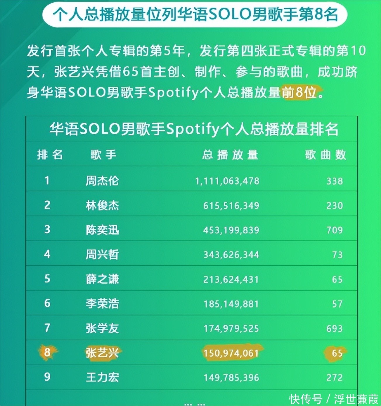 34. 总播放量突破1.5亿次,在华语SOLO男歌手中位列第八。
