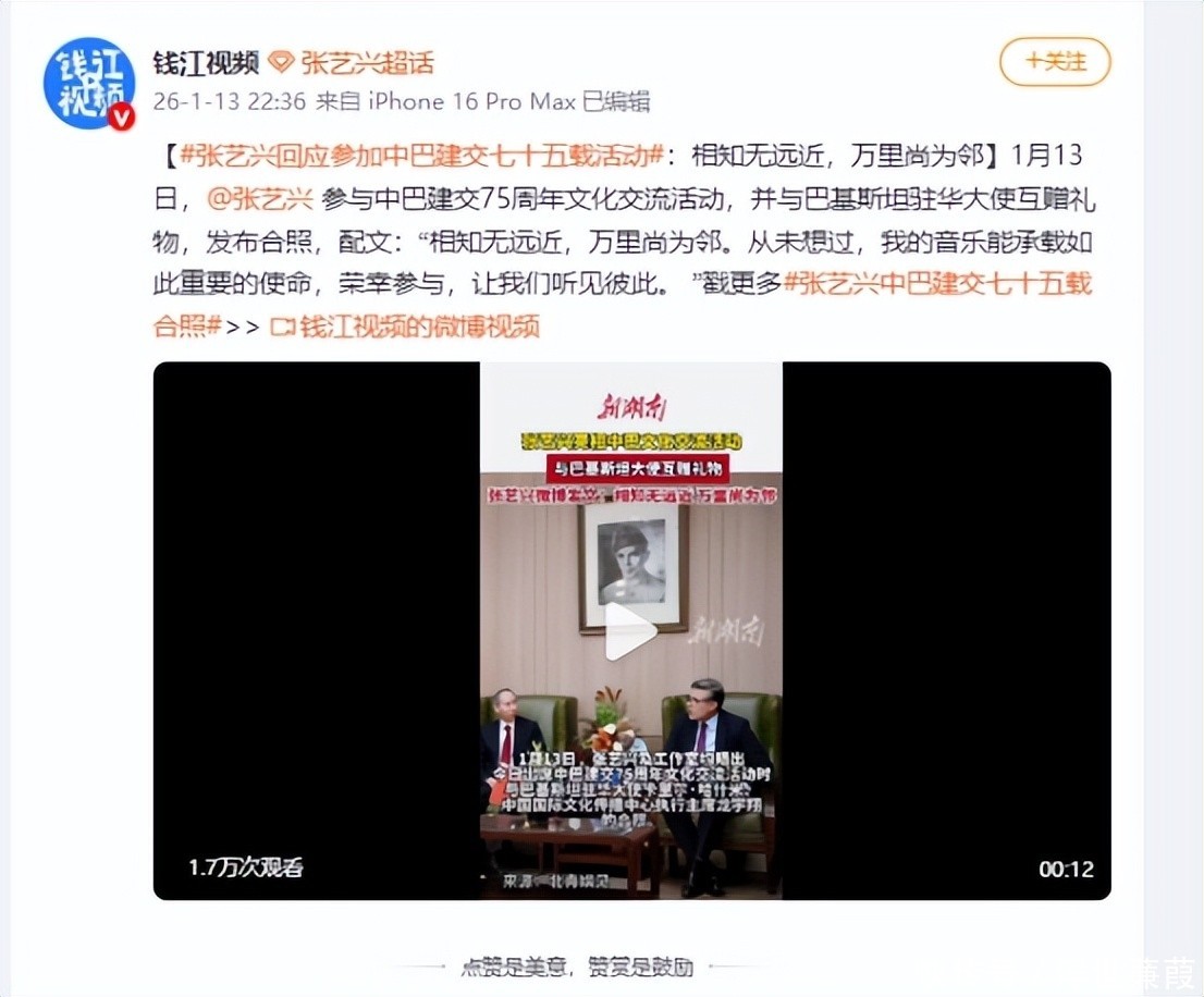 1. 中巴迎来建交75周年的重要时刻,张艺兴的出现令人眼前一亮!